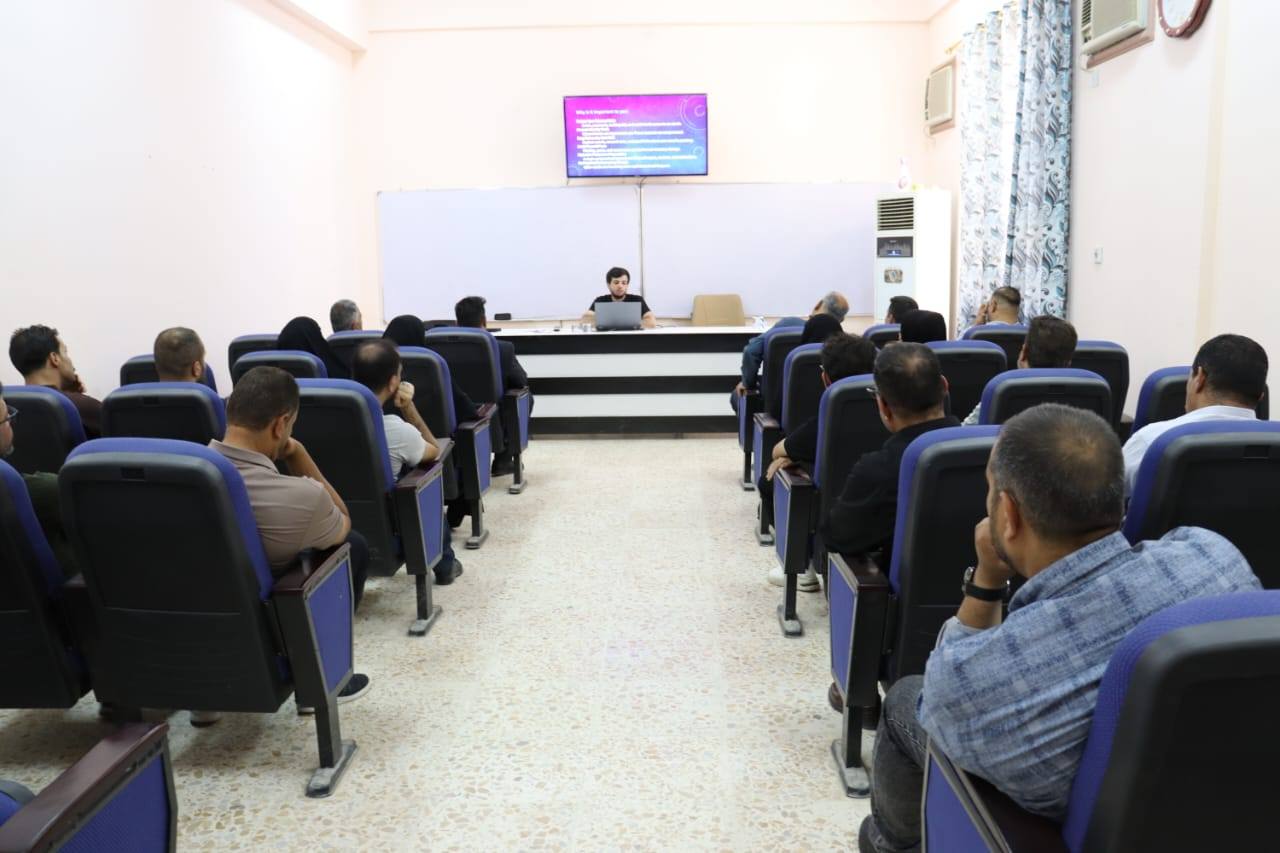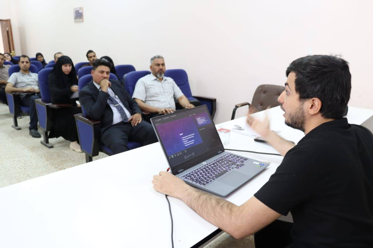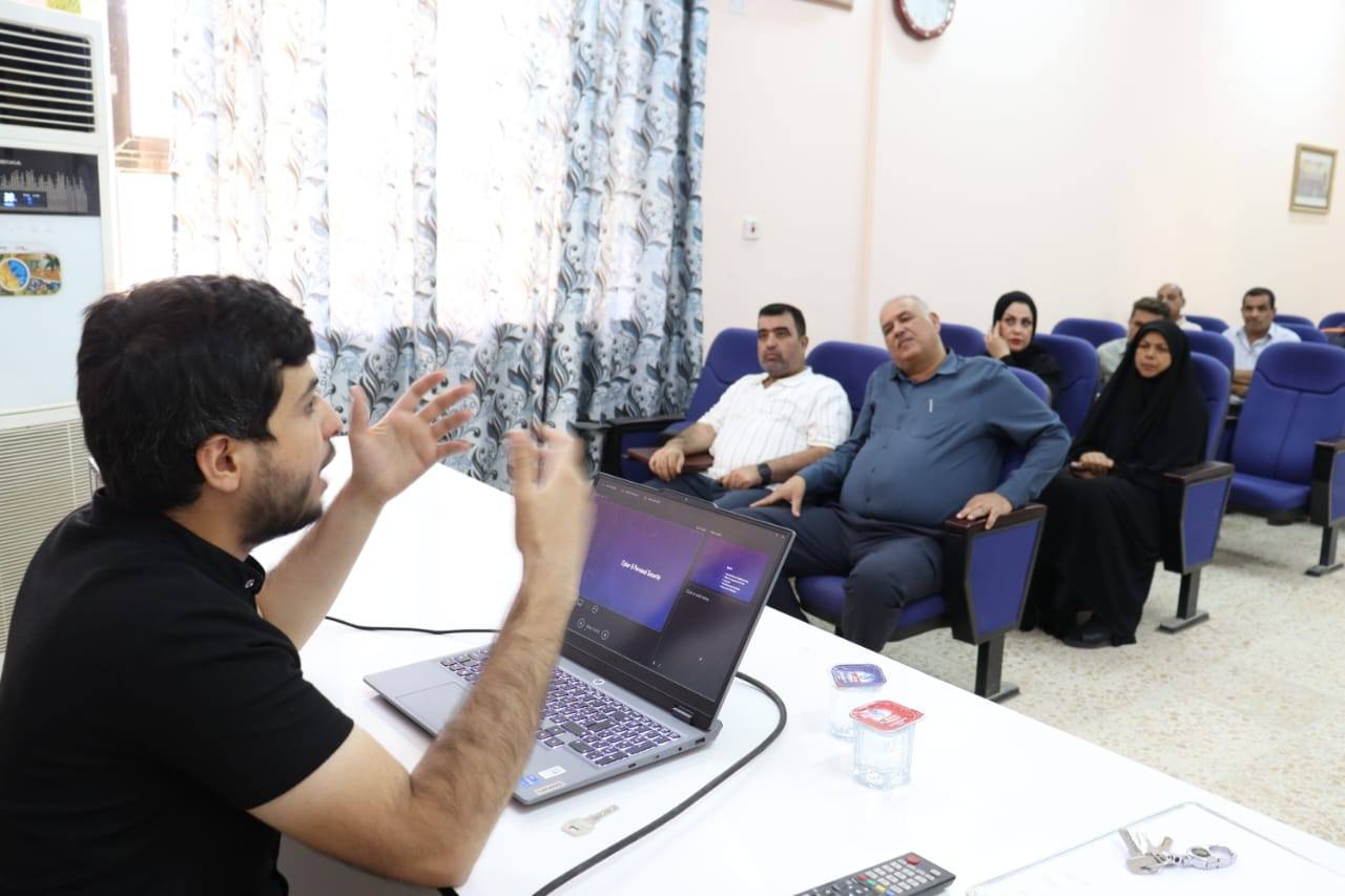 حيث حاضر فيها المهندس حسين طالب حسن وبين خلال هذه المحاضرة العديد من الفقرات المهمه موضحا” أهم الطرق التي يجب على الموظف اتخاذها من اجل منع الخروقات الالكترونية للمواقع المهمة في المؤسسات الحكومية من خلال تفعيل بعض برامج الحماية ورصانة كلمات المرور للبريد الإلكتروني وايضا اعتماد النسخ الاصلية للبرامج .