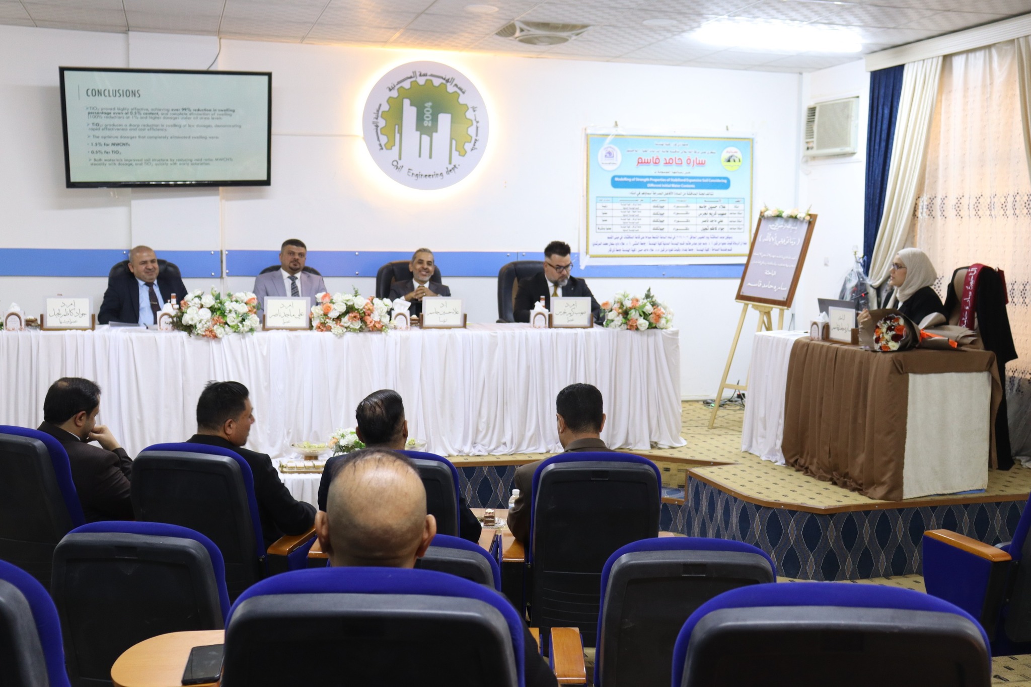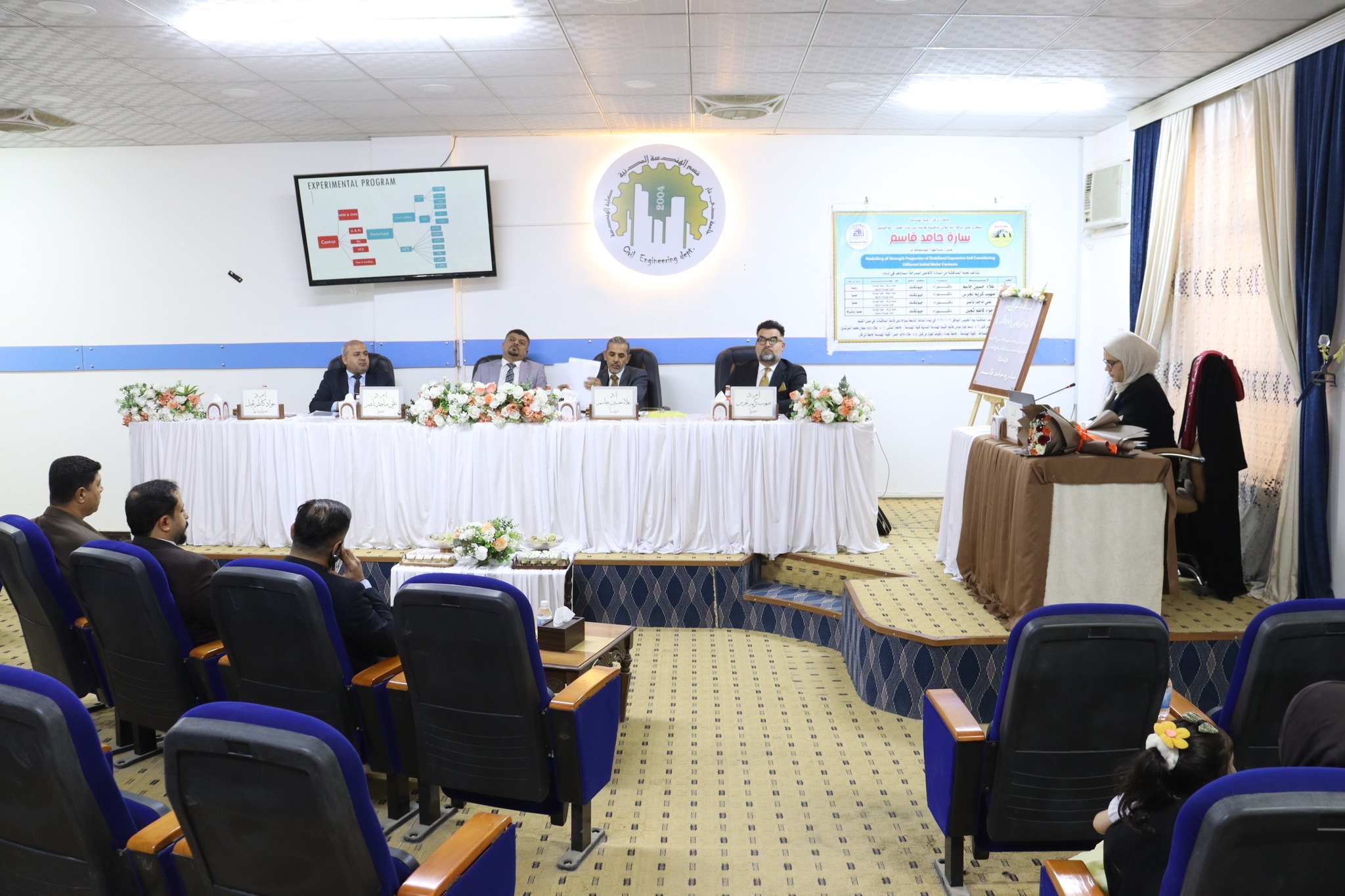 جرت في كلية الهندسة جامعة ذي قار مناقشة رسالة الماجستير للطالبة ( سارة حامد قاسم ) عن رسالتها الموسومة..
