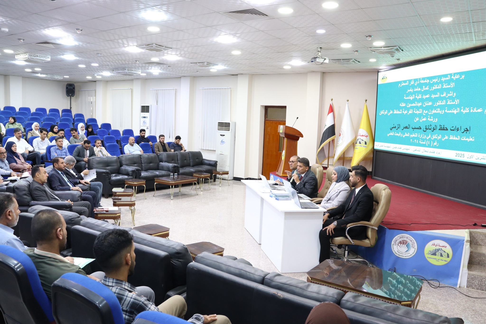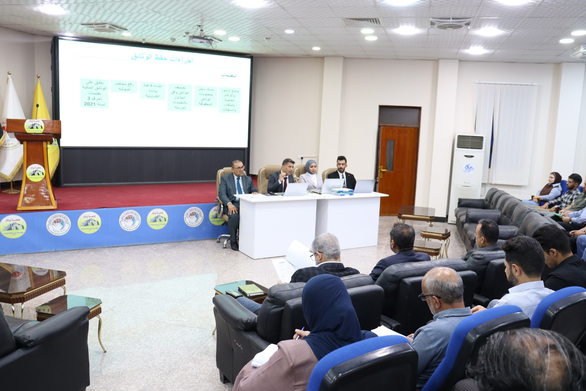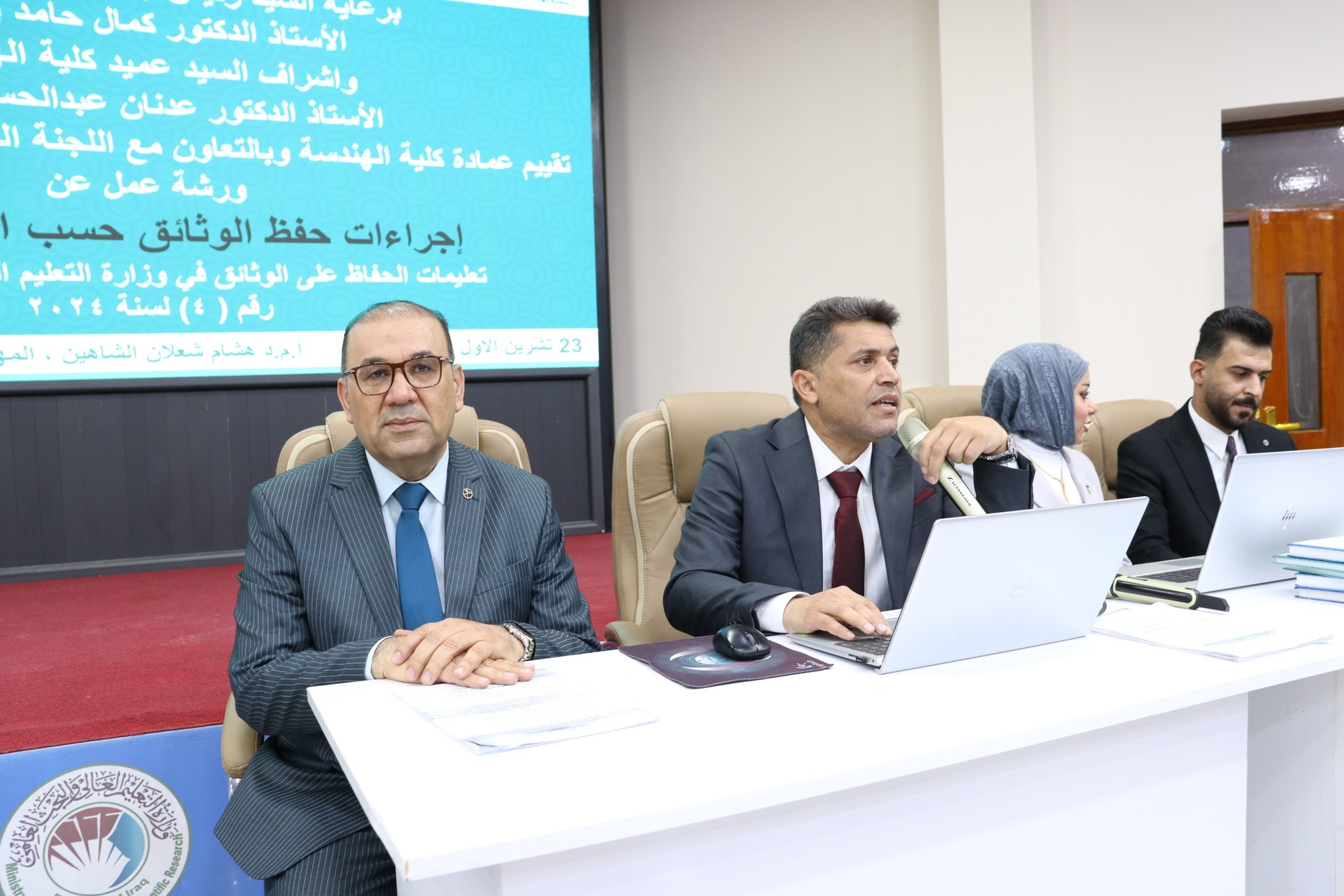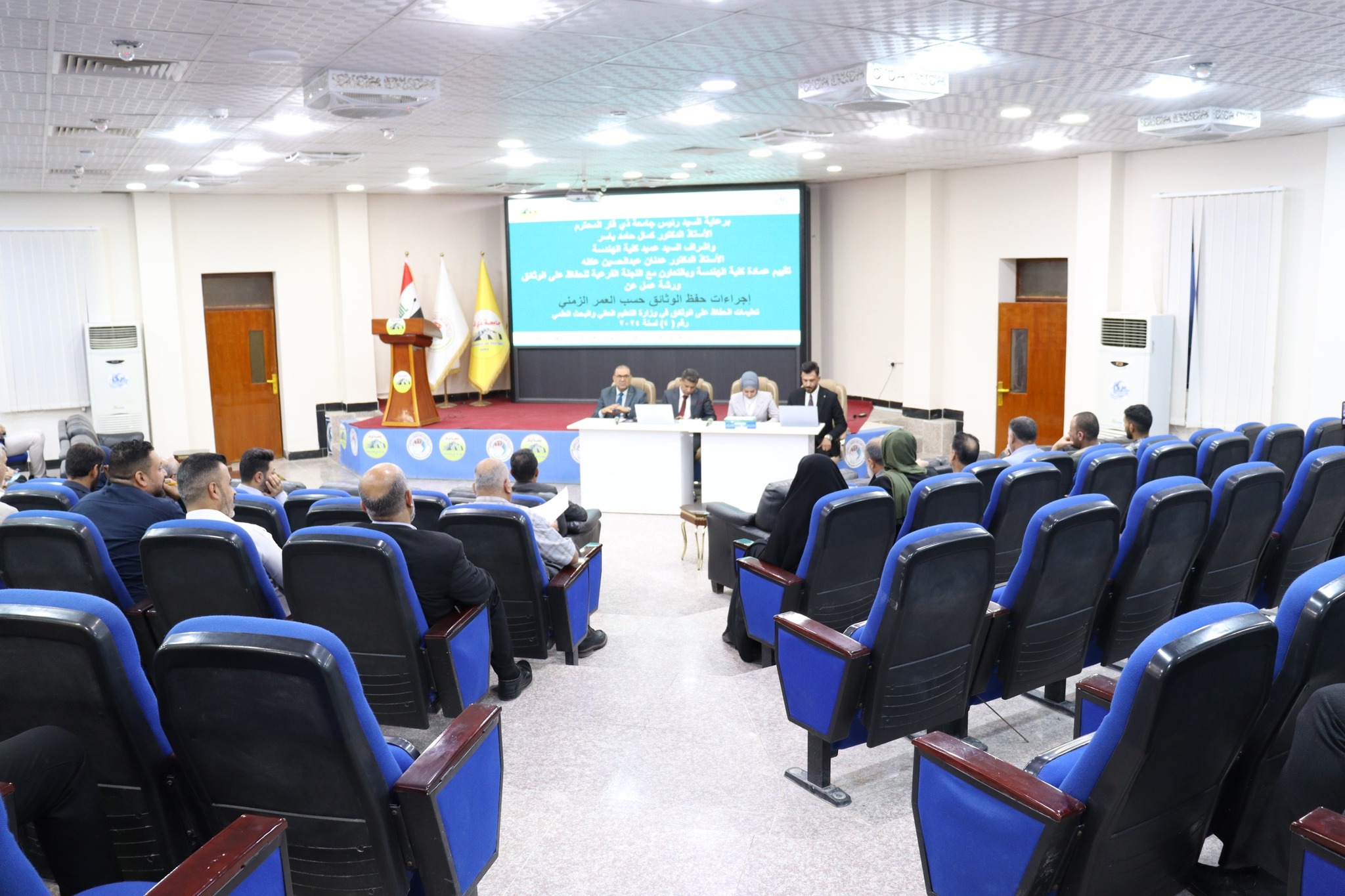 جاءت هذه الورشة استنادًا إلى تعليمات وزارة التعليم العالي والبحث العلمي الخاصة بآليات حفظ الوثائق وتنظيمها، بما يضمن سلامتها وسهولة الرجوع إليها عند الحاجة.