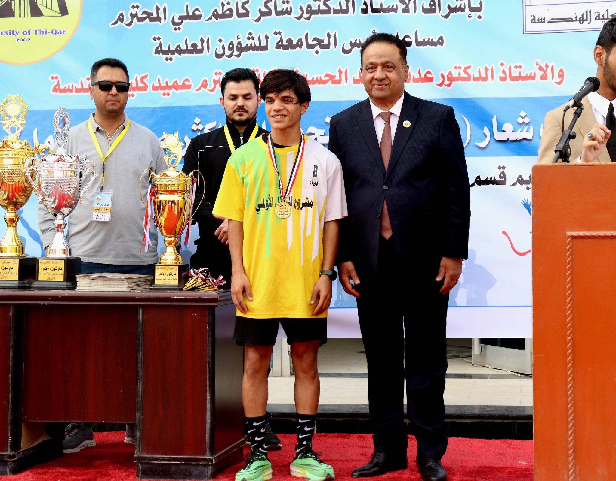 وفي ختام السباق، كرم السيد رئيس الجامعة، برفقة مساعد رئيس الجامعة للشؤون العلمية وعميد كلية الهندسة، الطلبة الفائزين ومنظمي البطولة، إضافة إلى الفرق والجهات المشاركة، مقدمين لهم شكرهم وتقديرهم على الجهود المبذولة في إنجاح هذا الحدث النوعي.