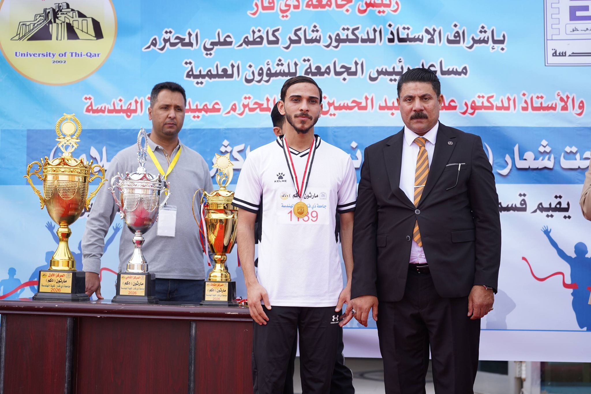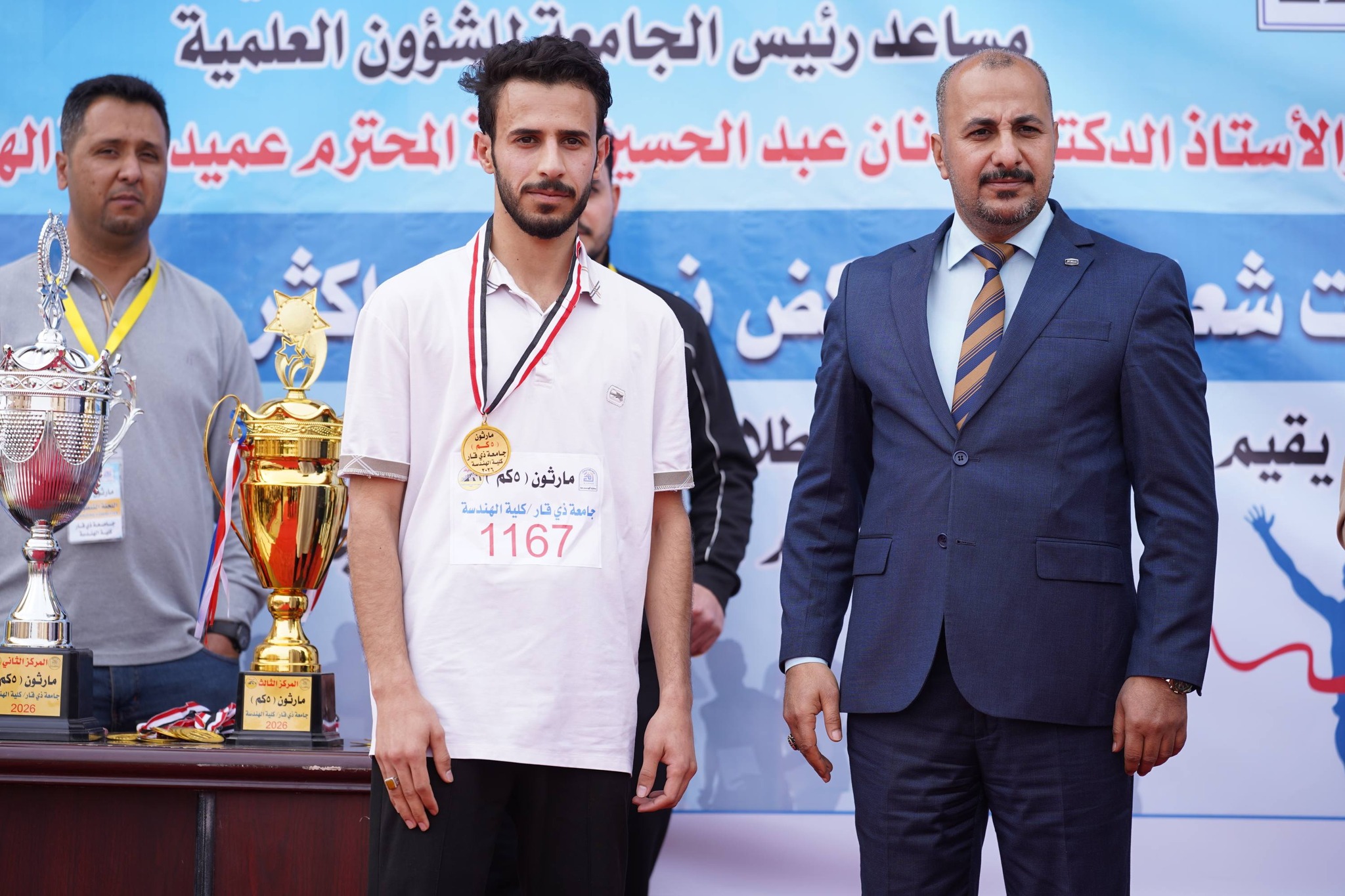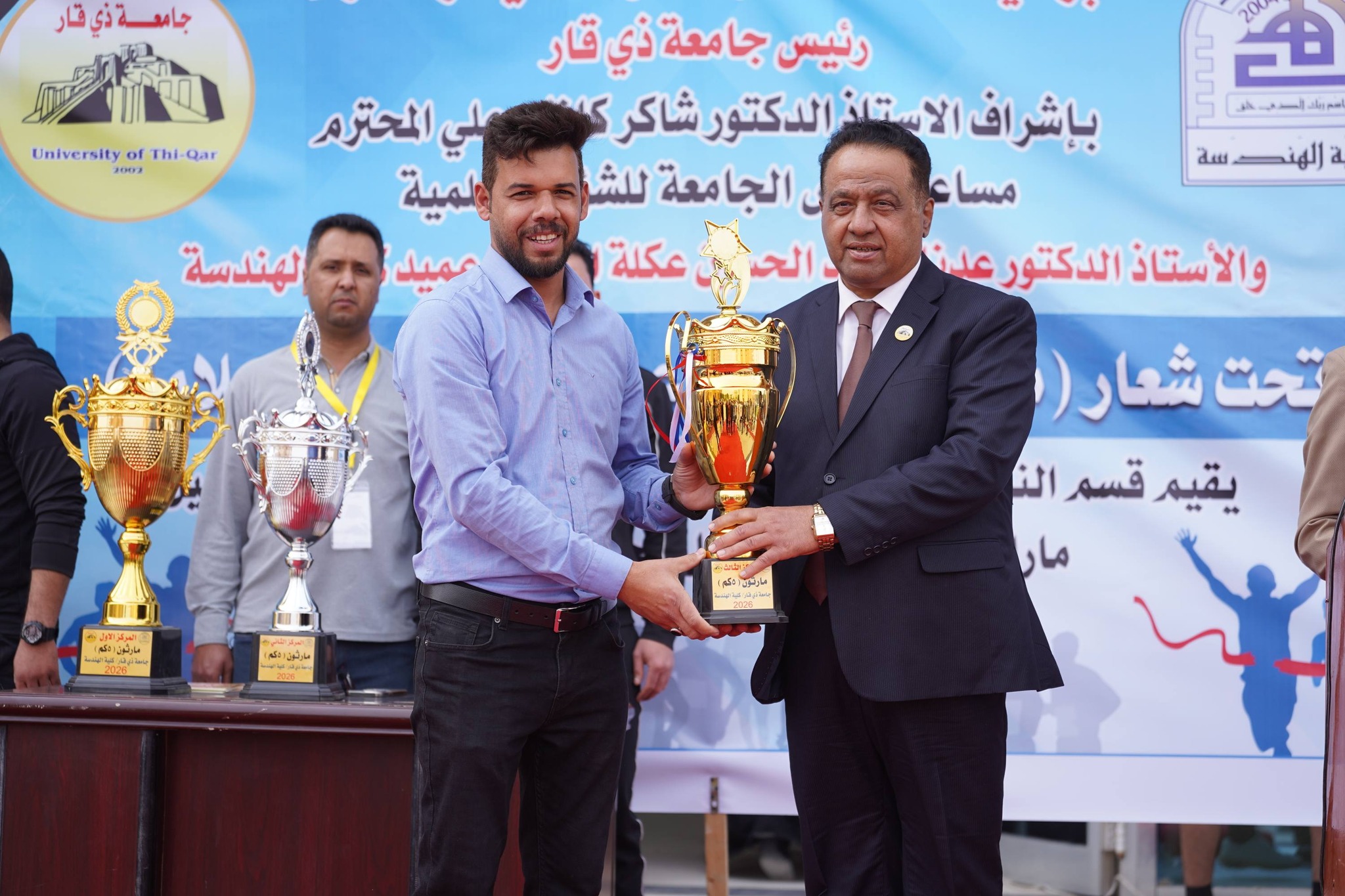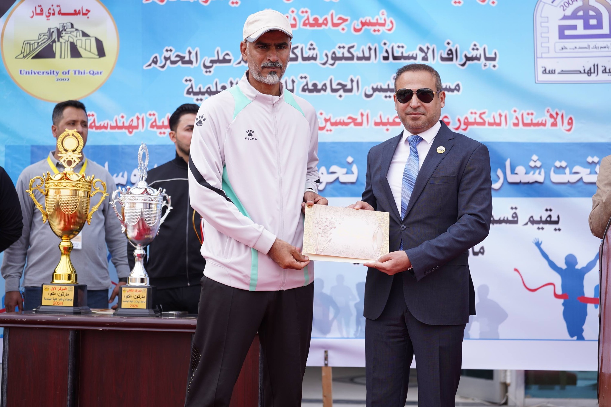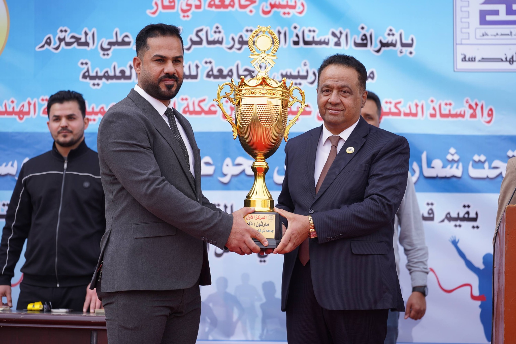 وأطلق رئيس الجامعة إشارة الانطلاق من كلية الهندسة، مرورًا بالطريق الحولي للجامعة لمسافة خمسة كيلومترات، بمشاركة واسعة من طلبة جامعة ذي قار، والاتحاد العراقي لألعاب القوى، ومشروع البطل الأولمبي التابع لمديرية تربية ذي قار، إضافة إلى طلبة جامعة العين والجامعة الوطنية للعلوم والتكنولوجيا، وبمجموع تجاوز 250 متسابقًا، في مشهد جسّد روح التنافس الإيجابي والتلاحم المجتمعي.