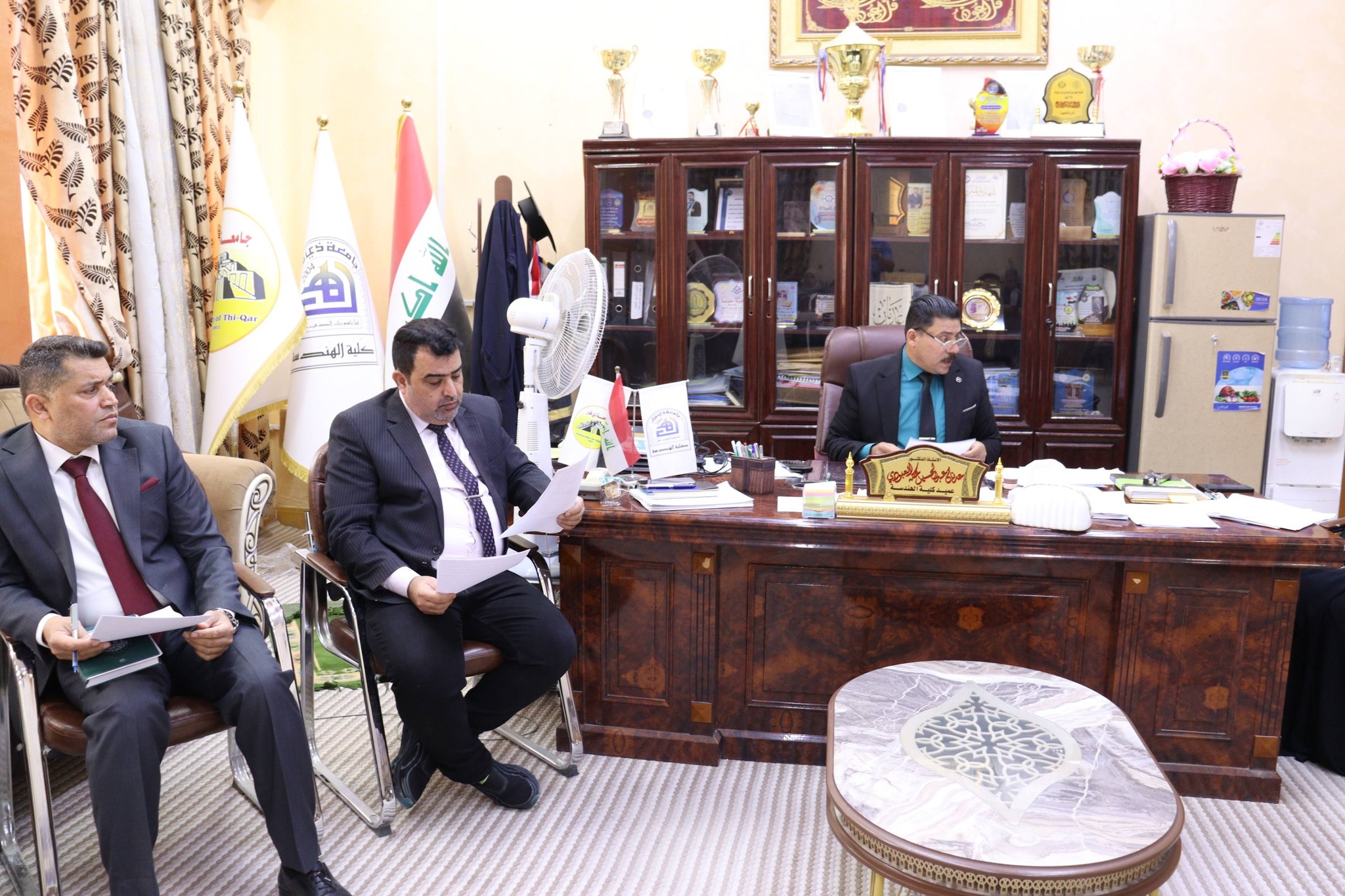 وجرى خلال الاجتماع مناقشة آليات تعزيز تطبيق معايير الجودة والاعتماد المؤسسي، والعمل على تطوير الأداء الأكاديمي والإداري بما ينسجم مع متطلبات وزارة التعليم العالي والبحث العلمي، فضلاً عن متابعة الإجراءات الخاصة بملفات الاعتماد المؤسسي للأقسام العلمية.
